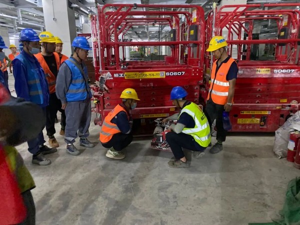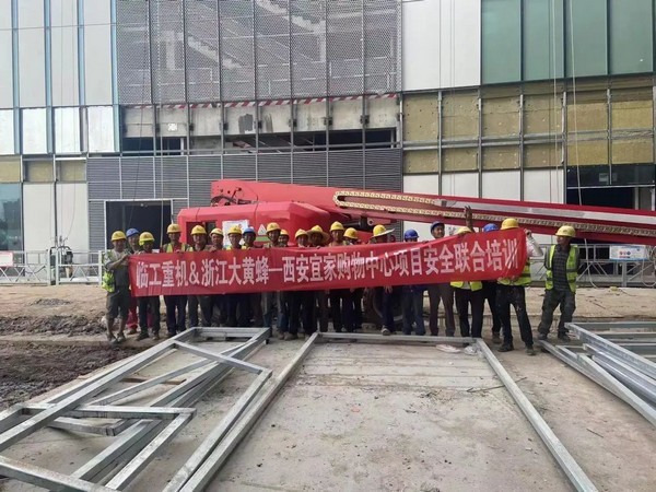 顶着烈日,踏着热浪,银河优越会_中文官网重机服务团队来到千年古都——西安,同浙江大黄蜂联合西安宜家购物中心项目共同组织安全操作培训,银河优越会_中文官网重机高机服务部指派区域资深服务工程师前往。
